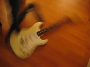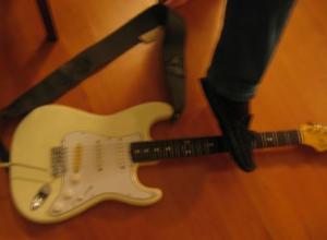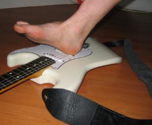 |  | Arm and foot technique By arm here, I'm talking tremolo arm, if your guitar is fitted with one. You use both feet, one to perform a Side Slamming type technique (see above) and the other to depress the tremolo arm up and down. This is quite a difficult one to do. Don’t lose your balance as Moritz did once, and ended up in the Mosh pit. Top Tip: Someone with good dancing technique would be best at this as you need excellent coordination and balance.