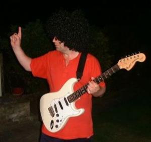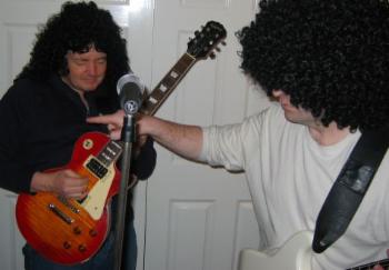 |  |  | And to finish with, some awful examples of impersonations. Do not do this. These are examples of Bad facial expressions from Jim and Moritz here, both which could be interpreted as Impersonations. Jim is sporting a stupid wide mouth expression (he was just about to sing I think) but ends up looking more like Meatloaf. The Moritz is clearly concentrating on that guitar run too much and has ended up doing a Ritchie Blackmore. Take great care not to accidentally "throw" impersonations or else the camera will pick you up and the next thing you know you'll be in Classic Rock magazine as "the next Ted nugent" or something (if they got you in a loin cloth swinging from a rope, say).