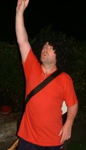 |  | First off then, the "back to the crowd" welcome point.  I suppose this is more of a wave actually, but it is important to stretch those arms and hold the position for at least 5 seconds (although no longer or else you'll end up looking like Gary Glitter!).  When you finally do turn around you must look completely pissed off or bored, just to confuse the audience. Critical is to have both arms completely parallel to the ground, with fingers pointing outwards. |